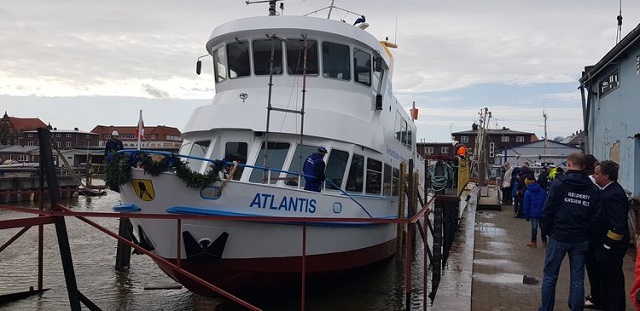 It was quite an industrial feat to get the new MV Atlantis ready for the tourist season. Both Cassen Eils and BSC worked to tight deadlines, and the crew and the workers from the dock worked hard to ensure that the new gal would be ready to go for the beautiful, sunny spring weather – that included a new paint job, the right funnel colors, other livery, various retrofits, interior work, general engine and other maintenance and cleanup. After all that, the M/V Atlantis will tour the harbor and go on short expedition cruises, e.g. to Brunsbüttel or to view nearby brackwater flats that are popular mating grounds for sea lions.