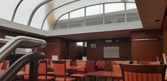 The highlight of the ship’s interior was the “convertible” canopy, which can be rolled forward in order to create an open-air sundeck. This versatility is essential in Northern Germany’s rough climate, where it could begin raining at any moment without warning.
